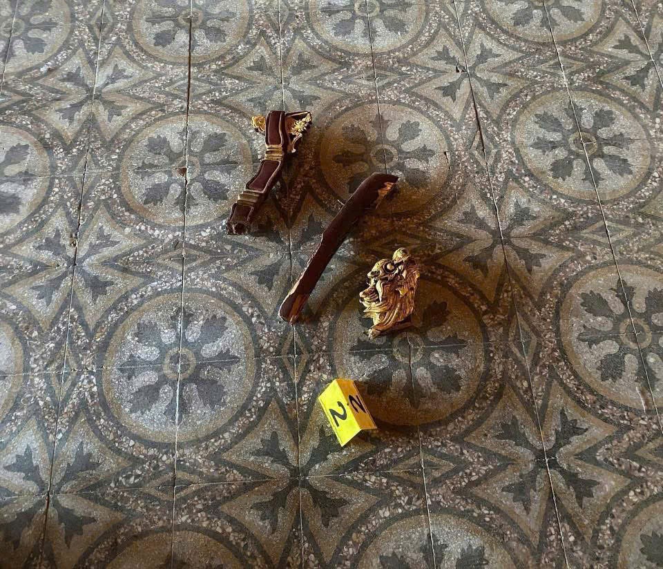 | Đối tượng Hồ Văn Phương Tâm xâm nhập vào điện Thái Hòa, làm gãy phần tựa phía trước tay bên trái của ngai vua triều Nguyễn trưng bày tại đây. Ảnh: VGP. |