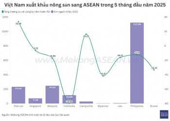 Việt Nam thu về hơn 1,8 tỷ USD từ xuất khẩu hàng nông sản sang ASEAN trong 5 tháng đầu năm 2025, chủ yếu gồm gạo, cà phê, rau quả. |