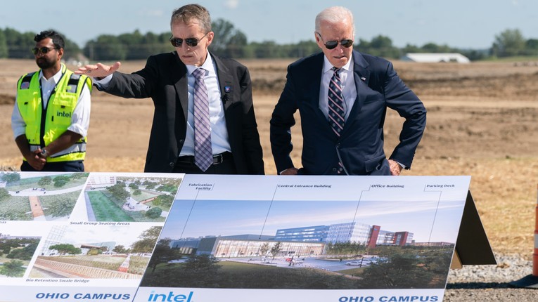 Intel cũng chính là công ty ủng hộ chính cho việc thông qua Đạo luật CHIPS, đạo luật này sẽ đầu tư hơn 50 tỷ USD vào ngành công nghiệp bán dẫn. Chính phủ Mỹ đã hỗ trợ liên doanh xưởng đúc của Intel và công ty cũng nhận được các khoản trợ cấp và giảm thuế từ các bang Ohio, New Mexico và Arizona.