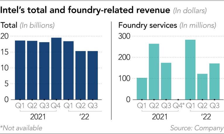 Với việc chi tiêu mạnh tay cho mảng kinh doanh xưởng đúc, Intel buộc phải hạ triển vọng doanh thu của cả năm 2022, với dòng tiền tự do âm từ 2 tỷ USD đến 4 tỷ USD, so với mức âm 1 tỷ USD đến 2 tỷ USD mà công ty đã dự kiến vào đầu năm nay.