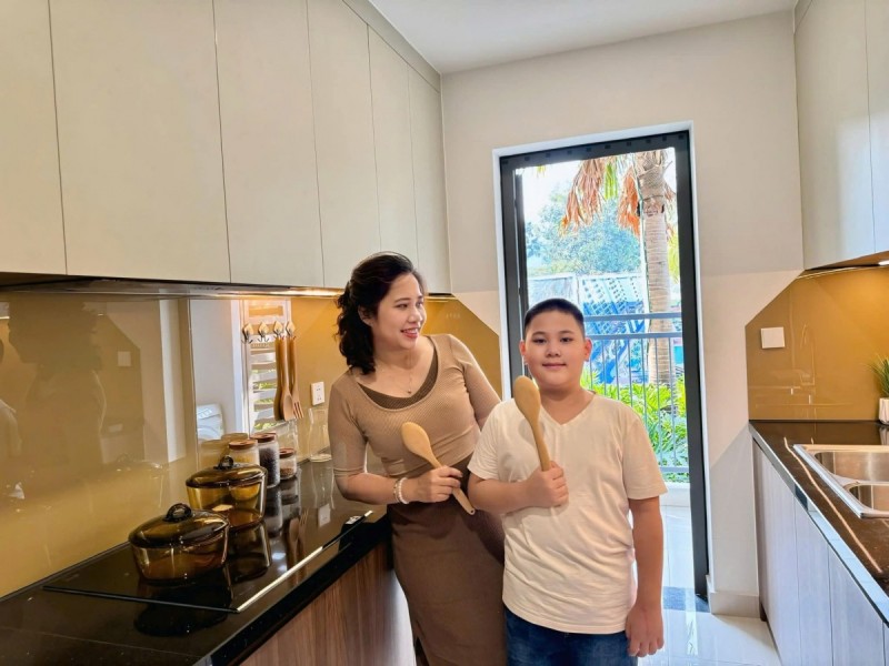 Chị Vân cho biết mình rất chú trọng không gian bếp. Ở Hanoi Melody Residences, bếp thông với logia nên khu vực nấu ăn rất thoáng, không bị mùi, không bị nóng bức. “Mỗi điểm này thôi là trong lòng mình đã chắc mẩm 80% sẽ chốt căn này,” chị Vân nói.