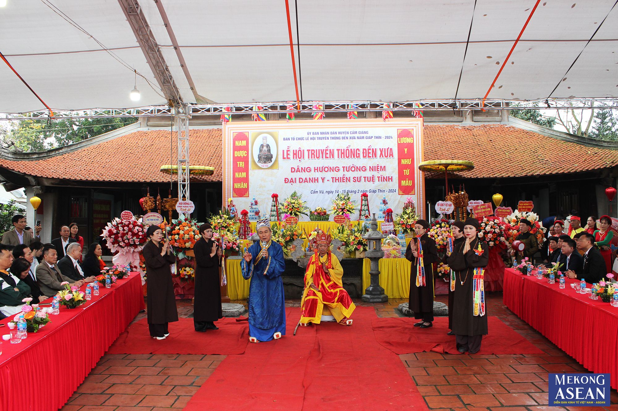 | Nhằm thể hiện sự tôn vinh y đức, phát huy truyền thống đạo lý uống nước nhớ nguồn, sáng 23/3 (tức 14/2 âm lịch), UBND huyện Cẩm Giàng trang trọng tổ chức lễ khai hội đền Xưa năm 2024, dâng hương tưởng niệm đại danh y, thiền sư Tuệ Tĩnh. |