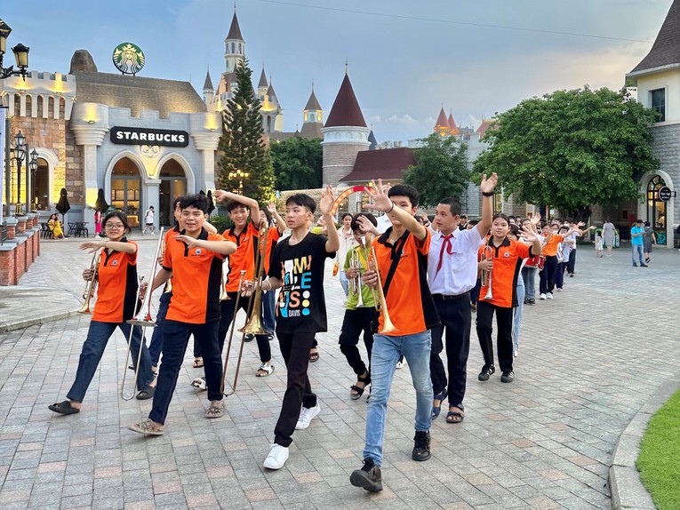 Hàng trăm gương mặt lấm tấm mồ hôi của các em thiếu nhi đang có mặt tại quảng trường đón VinWonders Nha Trang đều không giấu được vẻ háo hức trong mỗi bước tập diễu hành theo tiếng nhạc hiệu rộn ràng.