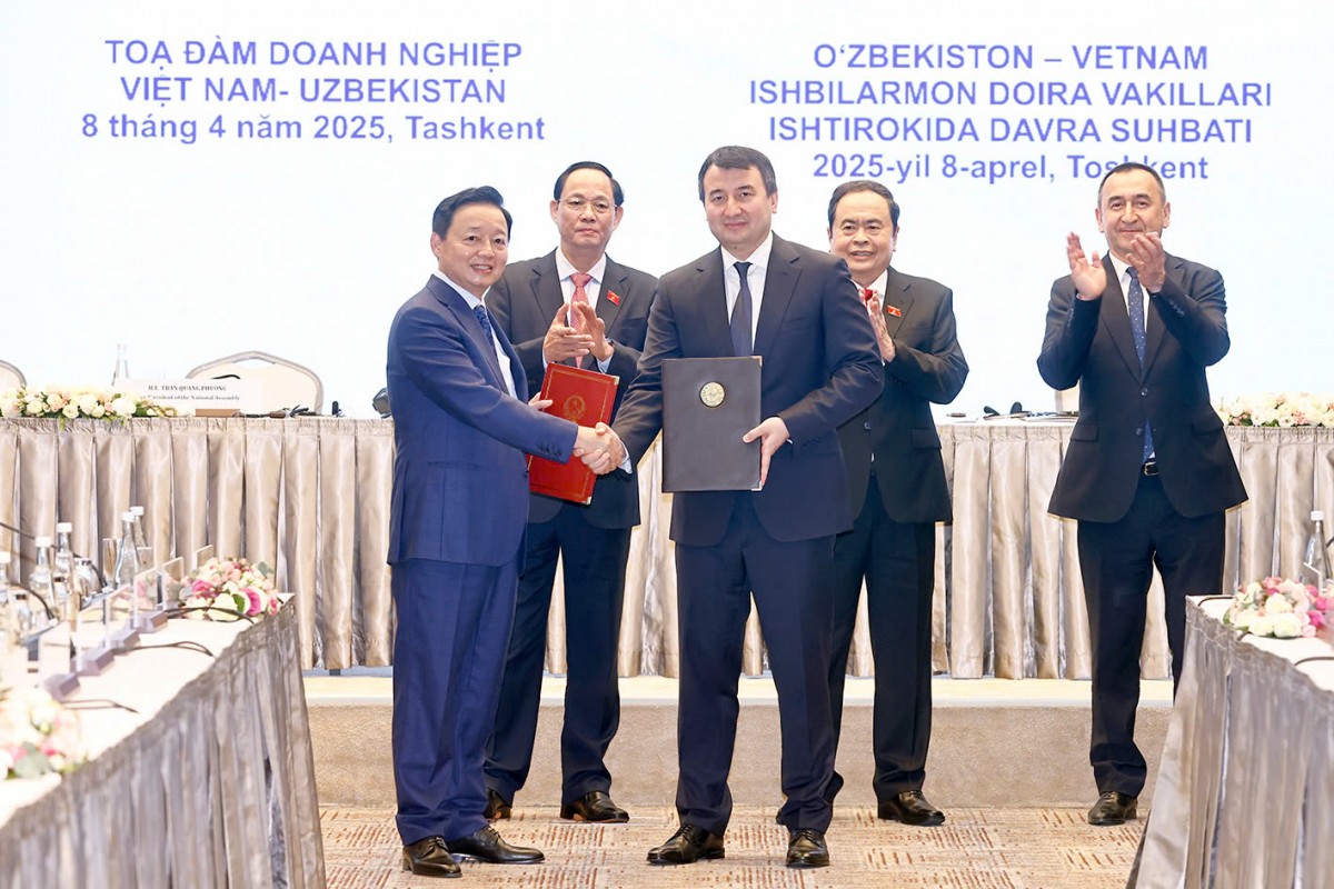 Tại tọa đàm, Chủ tịch Quốc hội Trần Thanh Mẫn đã chứng kiến Phó Thủ tướng Chính phủ Trần Hồng Hà và Phó Thủ tướng Chính phủ Cộng hòa Uzbekistan Khodjayev Jamshid Abdukhakimovich trao Dự thảo kế hoạch hành động về hợp tác song phương giai đoạn 2025-2026 giữa Việt Nam và Uzbekistan.