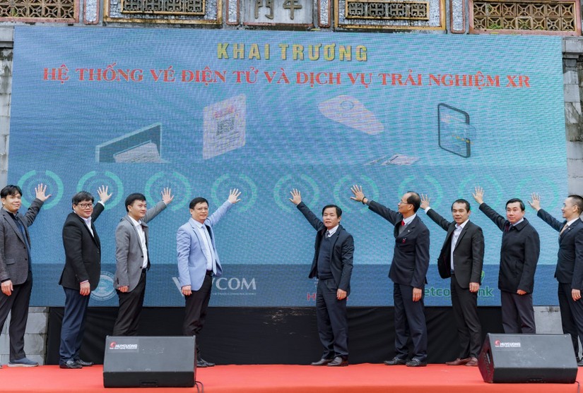| Các đại biểu ấn nút Khai trương hệ thống vé điện tử và dịch vụ trải nghiệm thực tế ảo XR |