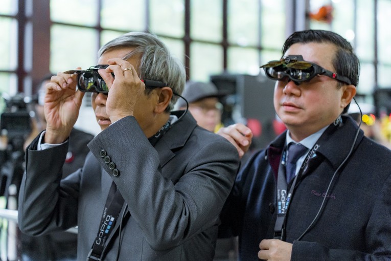 | Các khách mời trải nghiệm dịch vụ thực tế ảo XR. |