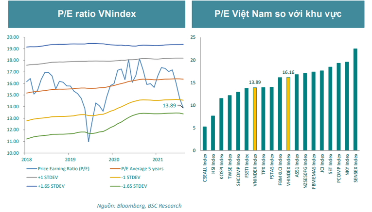 BSC cho hay P/E của VN-Index hiện ở mức định giá hấp dẫn với vị trí thứ 7 châu Á sau những phiên giảm điểm. Trong khi đó, P/E của HNX-Index ở mức 16,16 lần; đứng thứ 11 khu vực châu Á.