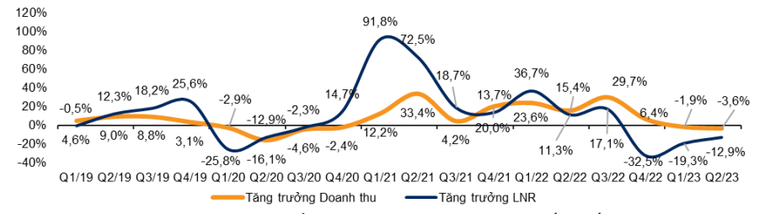 Trong báo cáo cập nhật ngày 9/8, VNDirect cho biết, lợi nhuận ròng quý 2 của các công ty niêm yết trên 3 sàn (HoSE, HNX, UPCoM) giảm 12,9% so với cùng kỳ năm ngoái, cải thiện so với quý 1/2023 (giảm 19,3%) và quý 4/2022 (giảm 32,5%).
