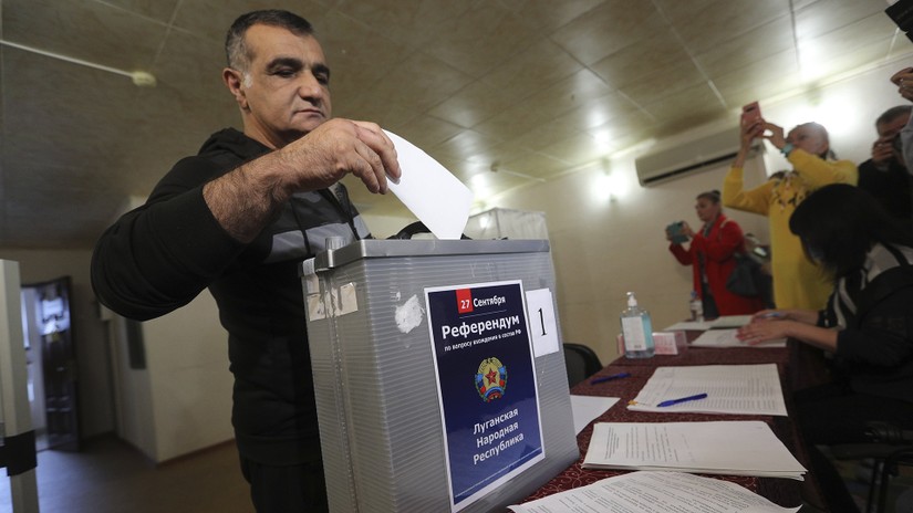 Giới chức thân Nga tại 4 tỉnh Ukraine gồm Donetsk, Lugansk, Kherson và Zaporizhzhia đã tổ chức các cuộc trưng cầu dân ý về việc sáp nhập Nga từ ngày 23/9 - 27/9. Đến ngày 28/9, Nga tuyên bố cuộc kiểm điểm kết quả cuộc trưng cầu dân ý đã hoàn tất.