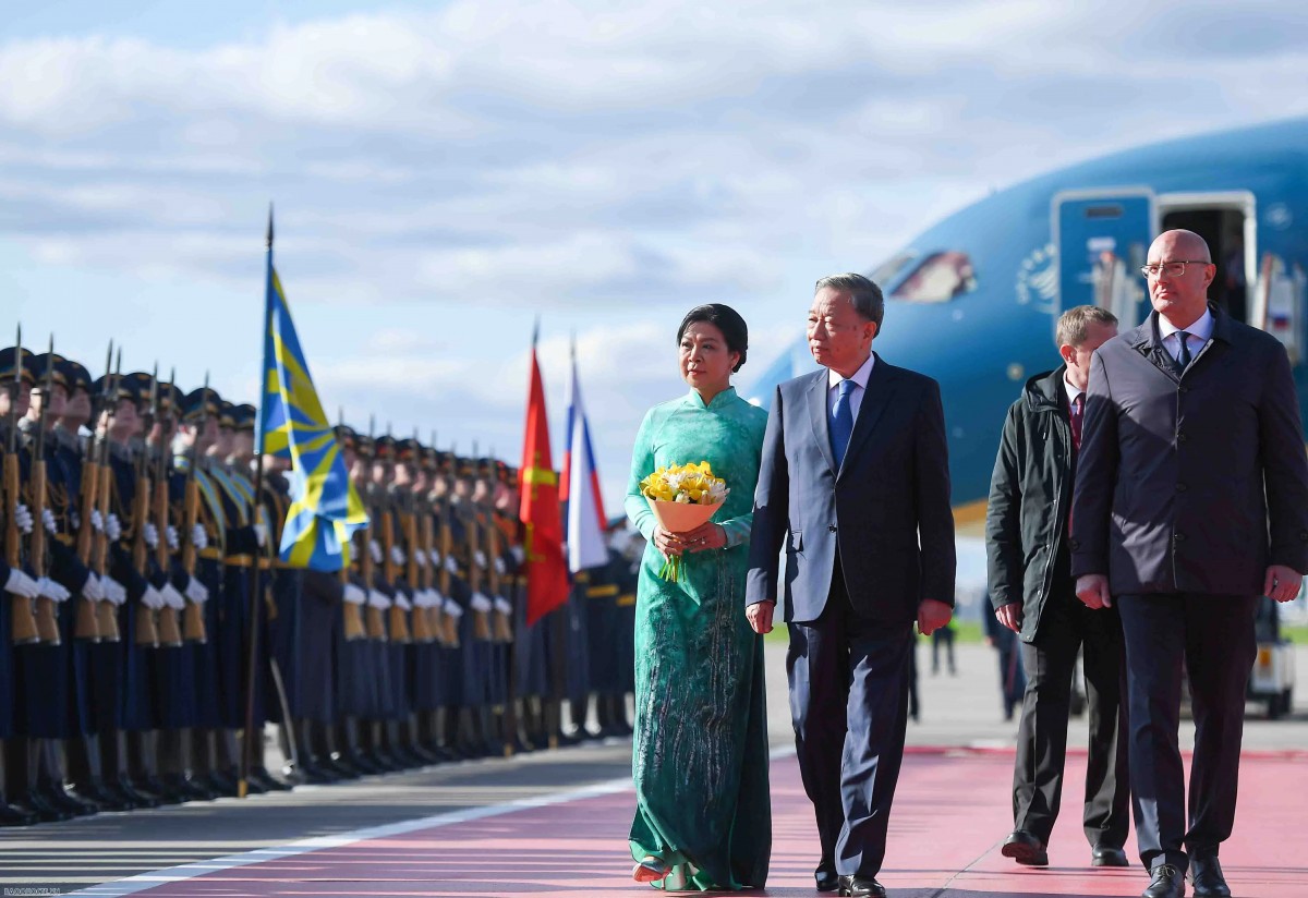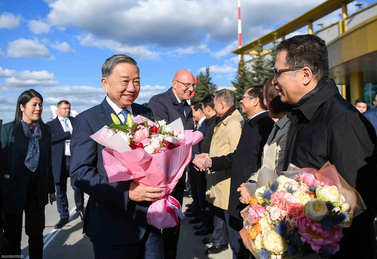 Chào đón Tổng Bí thư Tô Lâm tại sân bay có Phó Thủ tướng Nga Dmitry Chernyshenko và một số quan chức Bộ Ngoại giao Nga, Đại sứ Nga tại Việt Nam G.S.Bezdetko; Đại sứ Việt Nam tại Liên bang Nga Đặng Minh Khôi và đông đảo cán bộ, nhân viên Đại sứ quán và cộng đồng người Việt Nam tại Liên bang Nga.