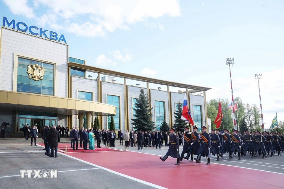 | Lễ đón chính thức Tổng Bí thư Tô Lâm tại sân bay Vnukovo 2, thủ đô Moskva. Ảnh: TTXVN. |