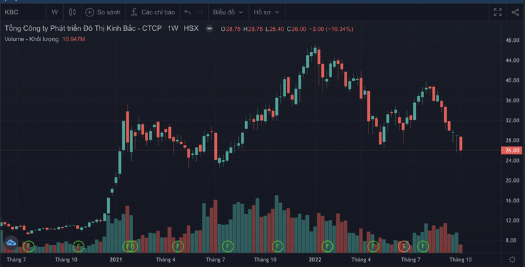 Trên thị trường cổ phiếu, KBC mới hồi phục được một vài phiên trước đó, nhưng 2 phiên gần đây giảm liên tiếp, phiên 3/10 giảm sàn. Đóng cửa phiên giao dịch 4/10, KBC “trôi” về vùng đáy một năm ở mức 26.000 đồng/cp.