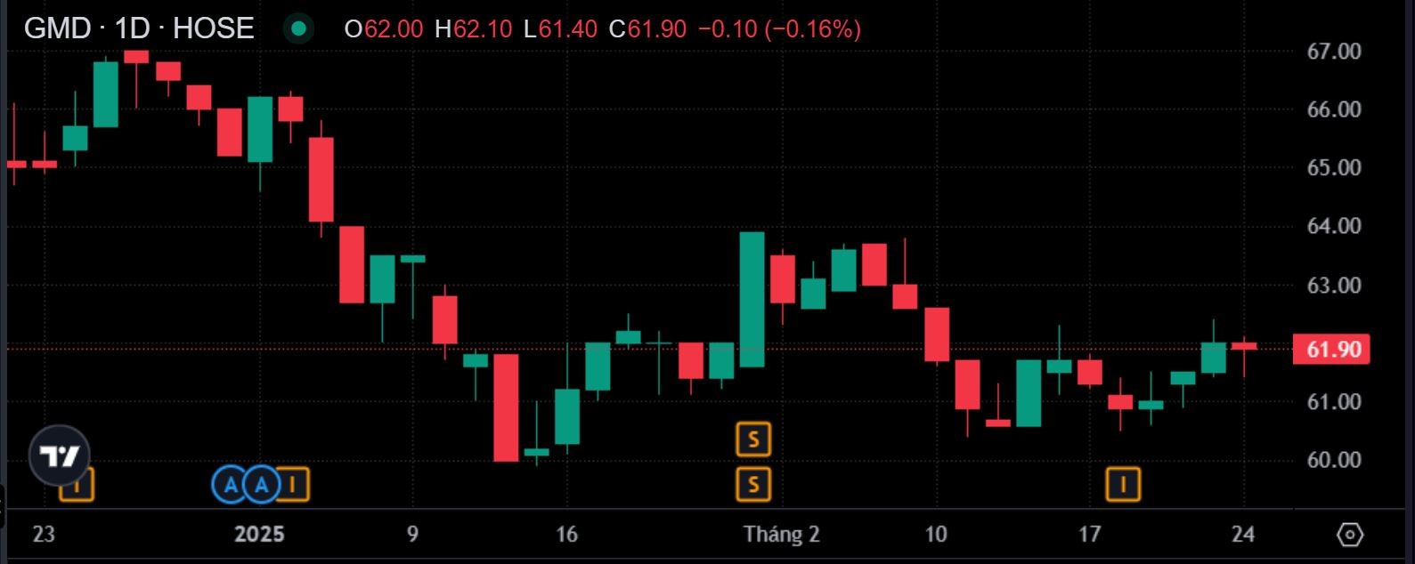 Trên thị trường chứng khoán, cổ phiếu GMD mở đầu năm 2025 với chuỗi giảm từ trên ngưỡng 66.000 đồng/CP về còn 60.000 đồng/CP vào trung tuần tháng 1/2025. GMD sau đó phục hồi lên tiệm cận ngưỡng 64.000 đồng/CP, trước khi suy giảm và giao động quanh 60.500 – 62.000 đồng/CP những phiên vừa qua.