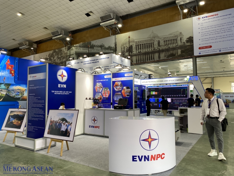 | VCAE EXPO 2025 có quy mô hơn 300 gian hàng trưng bày về các lĩnh vực trong ngành năng lượng đến từ các tập đoàn, doanh nghiệp lớn của Việt Nam, Trung Quốc và các nước ASEAN. Các lĩnh vực trưng bày tại triển lãm gồm công nghiệp điện lực, năng lượng xanh, chuyển đổi số trong ngành năng lượng và xe điện - trạm sạc. Ảnh: Hà Anh/Mekong ASEAN. |