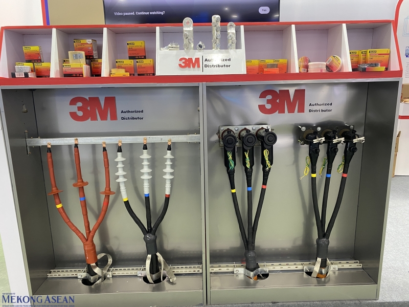| CTCP Công nghệ và giải pháp tự động hoá SH Việt Nam (VASSH) – nhà phân phối uỷ quyền của hãng 3M tại Việt Nam, giới thiệu các thiết bị phụ kiện ngành điện, đầu cáp, hộp nối cáp, băng keo, chống cháy lan… Ảnh: Hà Anh/Mekong ASEAN. |