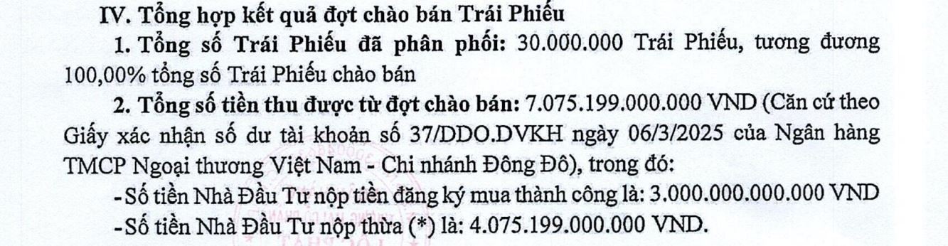 Theo thông báo của LPBank, dù chỉ chào bán lượng trái phiếu trị giá 3.000 tỷ đồng, tổng số tiền nhà đầu tư đăng ký mua trái phiếu của LPB là 7.075 tỷ đồng, tương đương số tiền nộp thừa là 4.075 tỷ đồng. Số tiền nhà đầu tư nộp thừa sẽ được ngân hàng hoàn trả theo quy định.