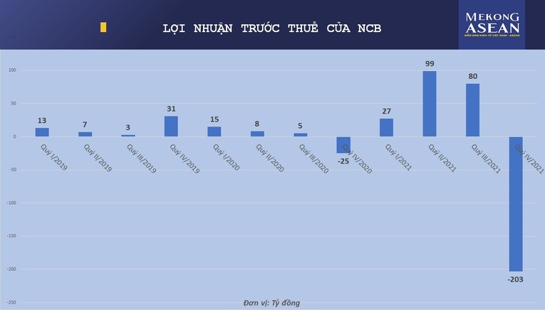 Lũy kế năm 2021, NCB lãi 2,3 tỷ đồng, giảm 38% so với năm 2020 lãi 4 tỷ đồng.