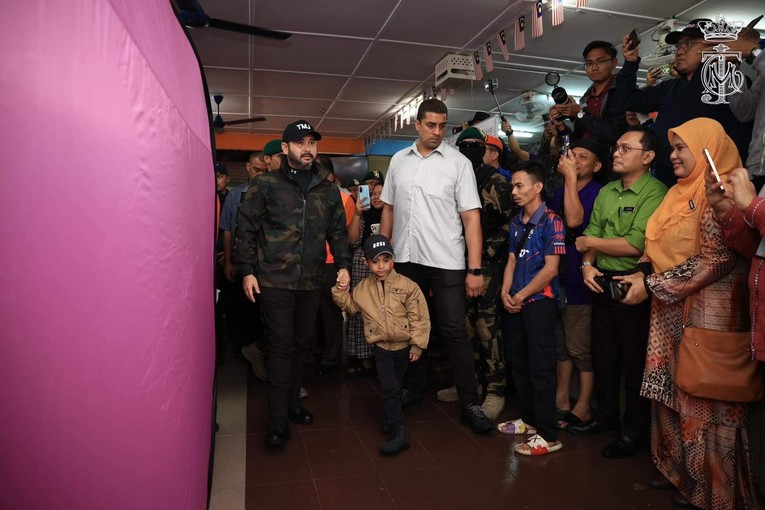 | Thái tử bang Johor Tunku Ismail Sultan Ibrahim đi thăm các nạn nhân lũ lụt. Ảnh: HRH Crown Prince of Johor |