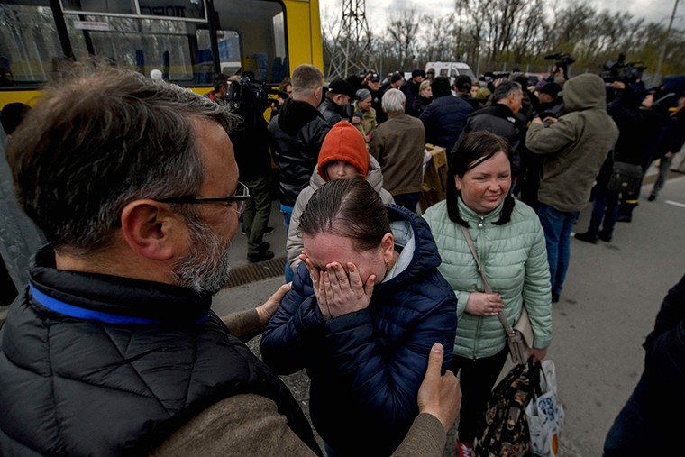 | Những người dân sơ tán khỏi cuộc chiến Mariupol gặp gỡ người thân và bạn bè ở Zaporizhzhia , Ukraine, ngày 21/4. ảnh: AFP |
