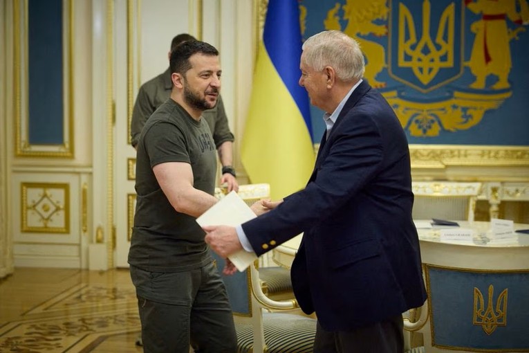 | Tổng thống Ukraine Volodymyr Zelensky và Thượng nghị sĩ Mỹ Graham, Kiev, ngày 26/5. Ảnh: Reuters |