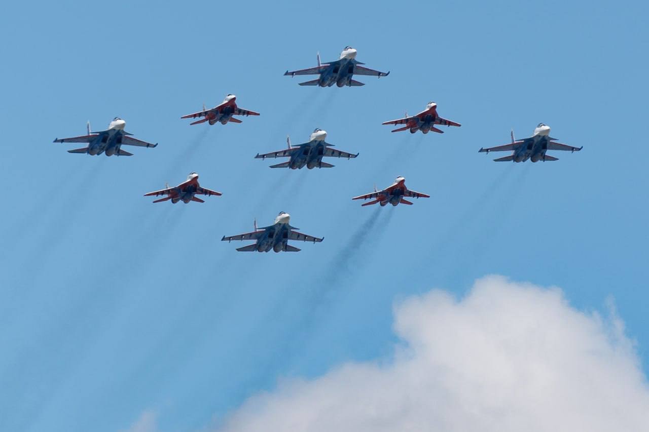 Bất chấp thời tiết có tuyết rơi bất thường vào giữa tháng 5 ở thủ đô Moscow của Nga, một số máy bay quân sự cũng tham gia vào lễ duyệt binh truyền thống này. Trong những năm trước, các chuyến bay đã bị hủy do điều kiện thời tiết không thuận lợi.