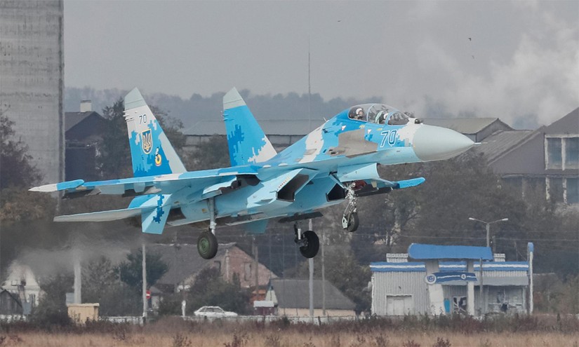 | Một máy bay Su-27 của Ukraine, tháng 10/2018. Ảnh: Reuters |