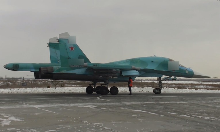 Su-34 là một trong những loại máy bay ném bom chiến đấu hàng đầu của Không quân Nga. Máy bay này có thể mang được hầu hết các vũ khí hiện đại của Nga từ bom dẫn đường, tên lửa dẫn đường nhằm vào các mục tiêu cố định của đối phương, với khả năng trọng tải lên đến 8 tấn. Su-34 có thể thực hiện các cuộc tấn công nhằm vào mục tiêu trong phạm vi gần 1.000km tùy theo trọng tải.