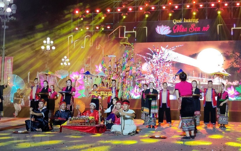 Một tiết mục biểu diễn tại khai mạc Lễ hội đường phố với chủ đề “Quê hương mùa sen nở”. Ảnh: TTXVN
