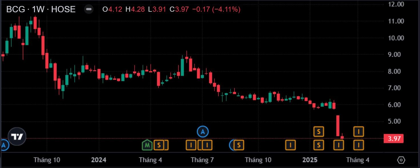 | Cổ phiếu BCG giảm mạnh thời gian vừa qua. Ảnh: Bamboo Capital |