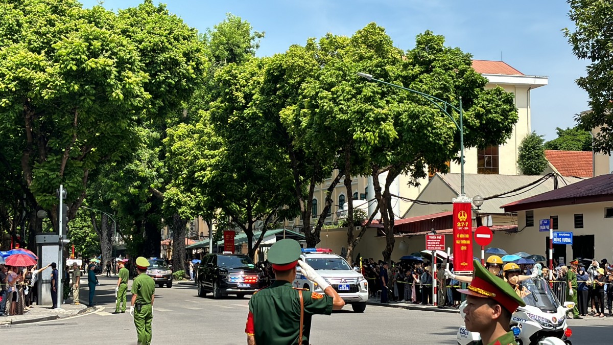 | Theo sau linh xa là đoàn xe chở gia quyến Tổng Bí thư Nguyễn Phú Trọng, cán bộ lãnh đạo của Đảng và Nhà nước. Ảnh: Thu Trang/Mekong ASEAN. |
