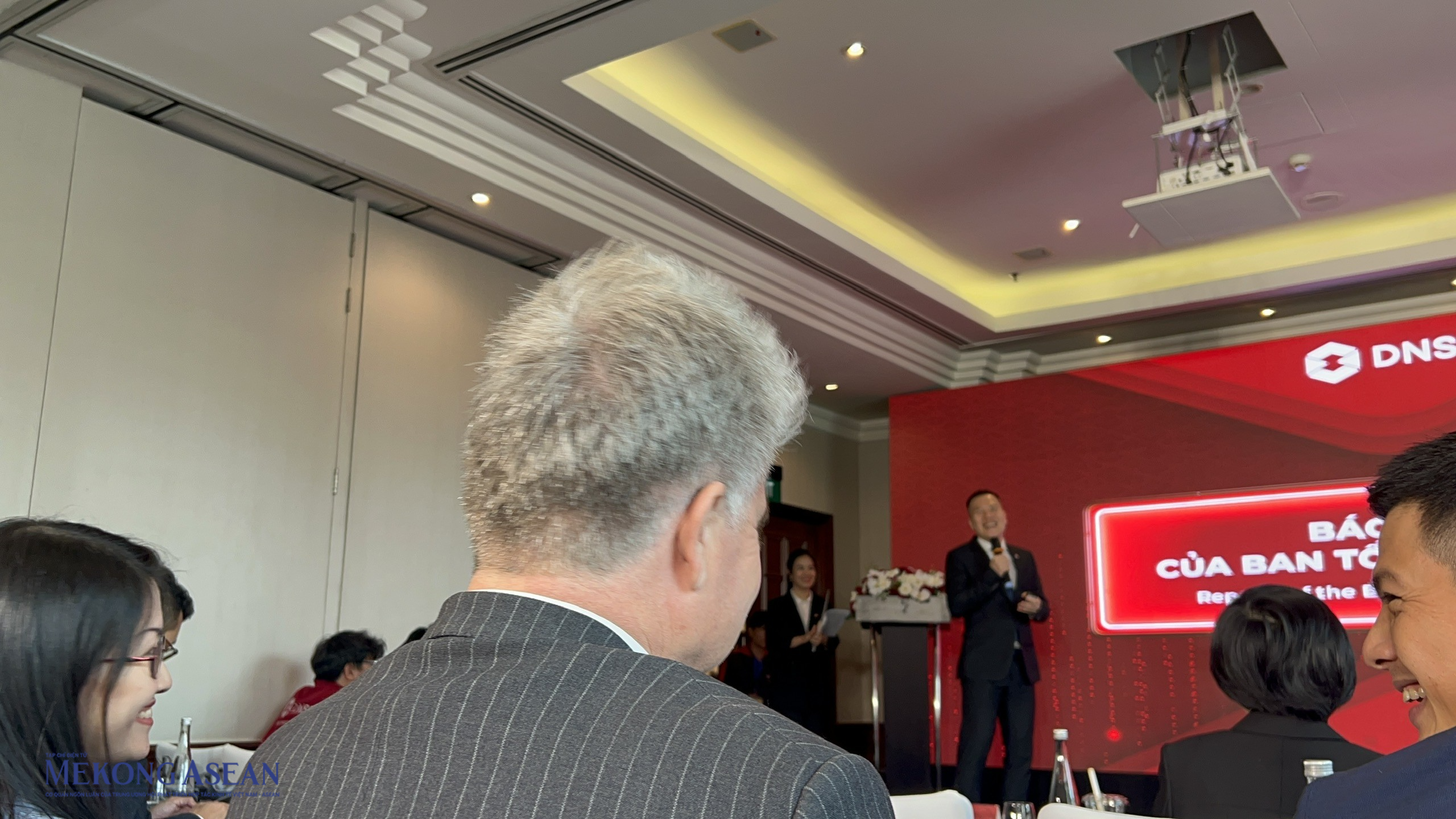 | Chủ tịch HĐQT DNSE Nguyễn Hoàng Giang (cầm micro) giới thiệu sự góp mặt của ông Petri Deryng. Ảnh: Minh Phong - MekongASEAN |