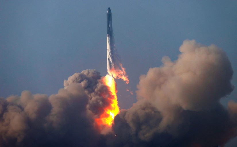 Hình ảnh tên lửa Starship rời khỏi bệ phóng ngày 20/4. Ảnh: Reuters