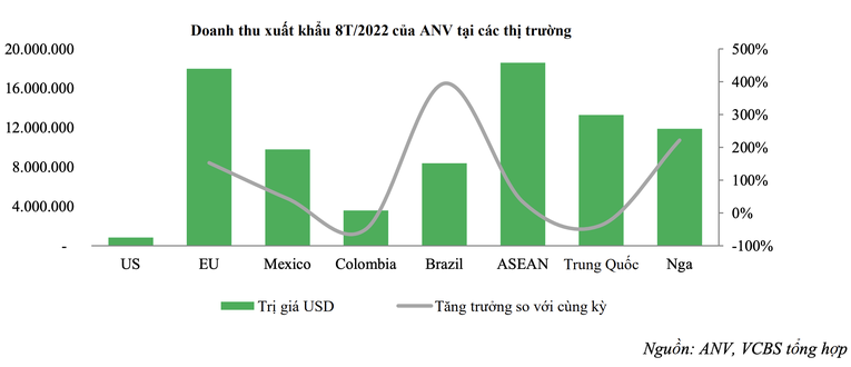 Bên cạnh đó, giá bán tại thị trường Trung Quốc cũng cao hơn so với các doanh nghiệp khác. Đối với thị trường châu Âu và Đông Nam Á, tình hình các đơn hàng của ANV vẫn đang ổn định.