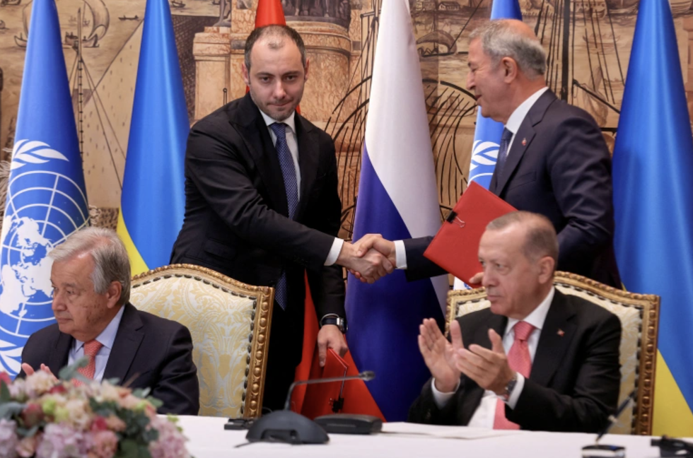 | Thoả thuận xuất khẩu ngũ cốc được tại Istanbul, Thổ Nhĩ Kỳ. Ảnh: Reuters |