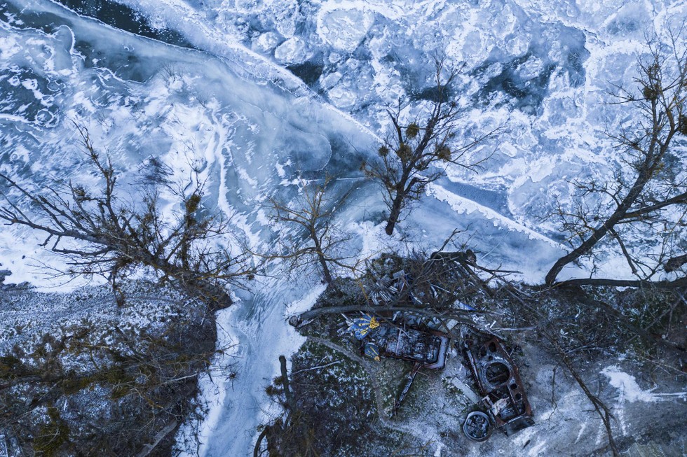 | Các phương tiện bọc thép bị phá hủy sau trận giao tranh tại bờ sông Siversky Donets, ngày 13/1. Ảnh: AP |