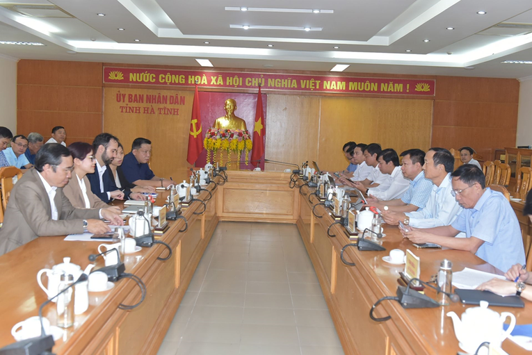 | Các đại biểu đại diện Quỹ Thiện tâm, Tập đoàn VinGroup, Đại sứ quán Israel tại Việt Nam làm việc với lãnh đạo UBND tỉnh Hà Tĩnh. |