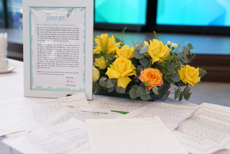 Những lá thư cảm ơn tình cảm mà các em sinh viên, học sinh Đại học Quốc gia TPHCM được nhận học bổng gửi đến NovaGroup.