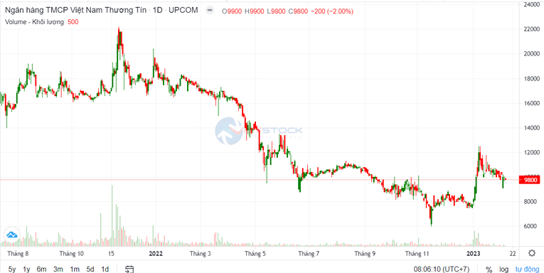 Trên thị trường chứng khoán, kết phiên 14/02/2023, cổ phiếu VBB đóng cửa ở mức 9.800 đồng/cổ phiếu, ghi nhận xu hướng tăng nhẹ so với thời điểm đầu năm. Tuy nhiên, nếu so với mức đỉnh khoảng 22.000 đồng/cp thiết lập thời điểm cuối năm 2021, cổ phiếu này đến nay đã đánh mất 55% thị giá.
