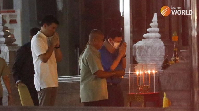 | Ông Thaksin cầu nguyện trong chùa. Ảnh: Thai PBS World |