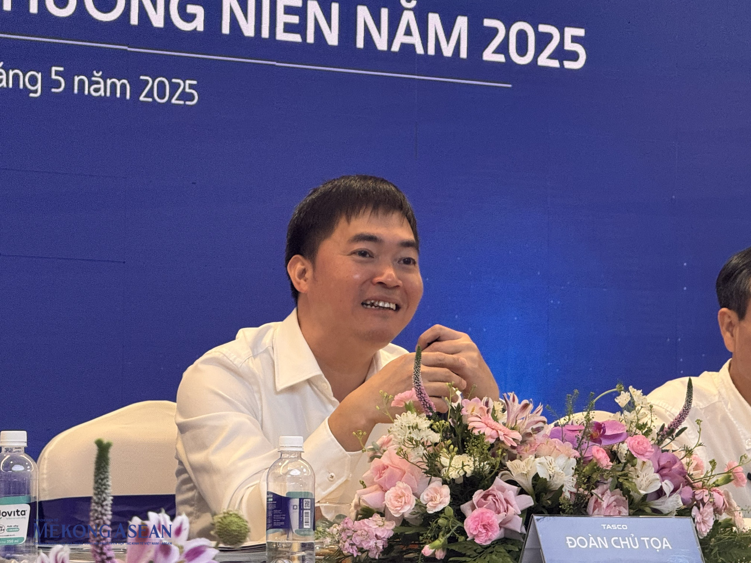 | Ông Vũ Đình Độ trả lời cổ đông tại đại hội ngày 26/5. Ảnh: Minh Phong - Mekong ASEAN |