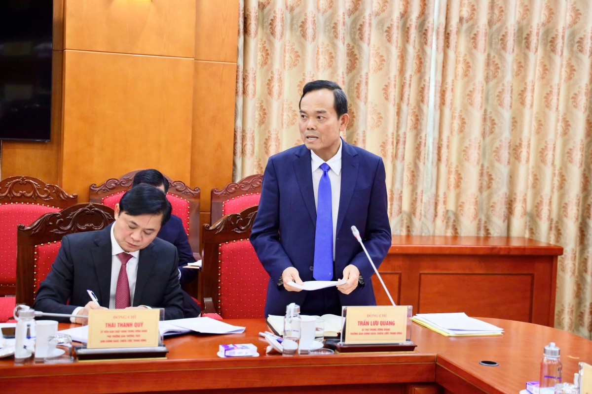 Tại buổi làm việc, Trưởng Ban Chính sách, chiến lược Trung ương Trần Lưu Quang đã trình bày báo cáo đánh giá và đề xuất 10 giải pháp chiến lược nhằm tạo đột phá phát triển kinh tế tư nhân trong thời gian tới.