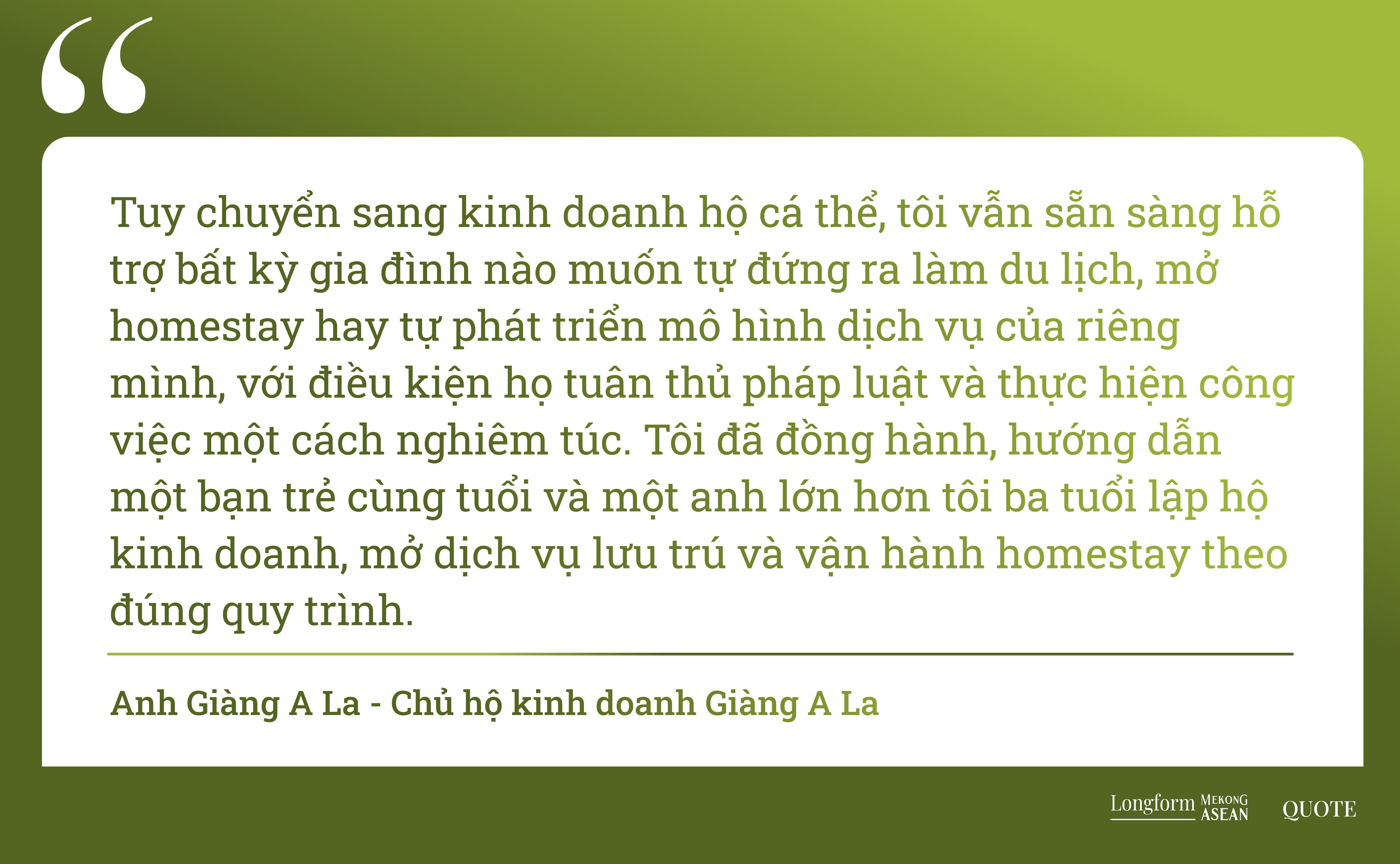 Tôi đã nhiều lần đứng ra hướng dẫn bà con quy trình kinh doanh, giải thích cách quản lý homestay, cũng như đề xuất mở rộng truyền thông, marketing để tăng sức hút đối với du khách, nhưng phần lớn các hộ dân trong hợp tác xã không mặn mà tiếp nhận, một phần vì họ e ngại thay đổi, một phần vì vẫn giữ quan điểm rằng tôi còn quá trẻ để dẫn dắt. Việc đóng thêm vốn để cải thiện chất lượng dịch vụ cũng không được đồng thuận, bà con chỉ muốn đảm nhận phần việc cụ thể và nhận tiền công, chứ không muốn đứng ra đầu tư hay chịu trách nhiệm chung.