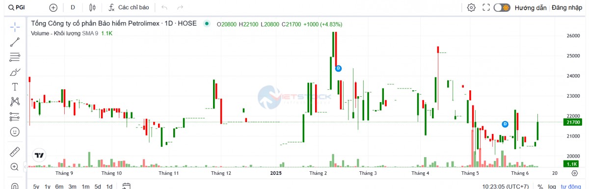 Trên thị trường chứng khoán, chốt phiên giao dịch ngày 10/6, cổ phiếu PGI dừng ở mức 20.700 đồng/cp, giảm nhẹ 0,48% so với đầu năm. Tương tự nhiều cổ phiếu ngành bảo hiểm, thanh khoản của PGI duy trì ở mức thấp.