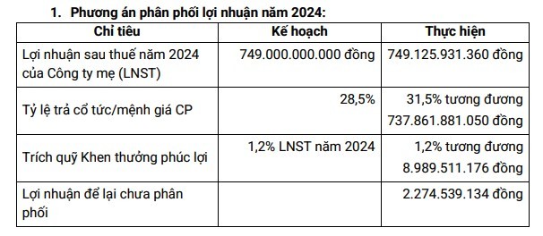 Trả cổ tức ở mức cao 31,5%
