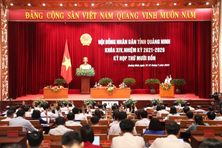 | Đại biểu HĐND biểu quyết thông qua các nghị quyết. Ảnh: Cổng thông tin điện tử tỉnh Quảng Ninh |