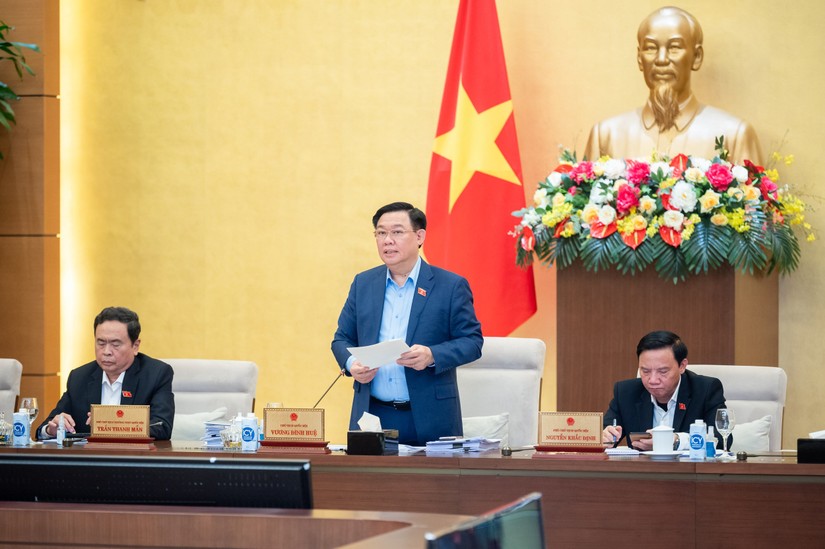 | Chủ tịch Quốc hội Vương Đình Huệ phát biểu tại phiên họp. Ảnh: CTTĐT Quốc hội |