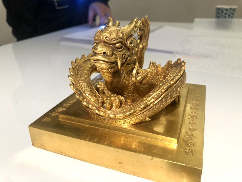 | Ấn vàng Hoàng đế chi bảo - bảo vật quốc gia. Ảnh: Cục Di sản văn hóa. |