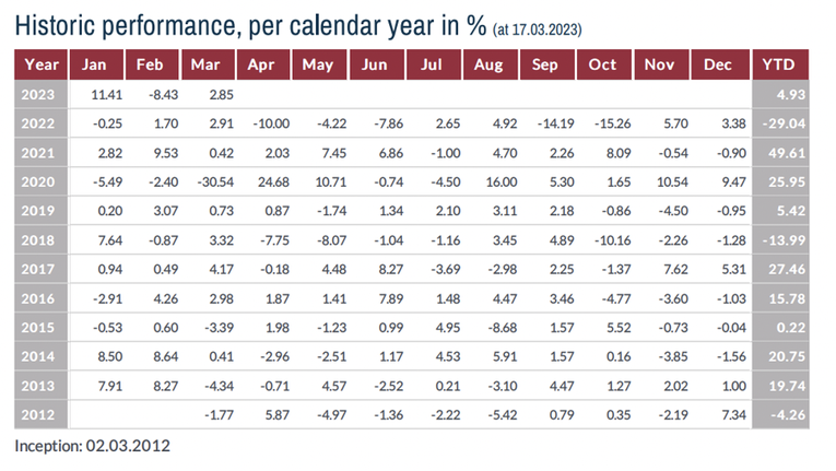 Theo Lumen Vietnam Fund, diễn biến nửa đầu tháng 3 của quỹ ghi nhận mức tăng trưởng thấp hơn so với chỉ số VN-Index. Nguyên nhân bởi quỹ ngoại này đã đánh giá thấp nhóm cổ phiếu ngân hàng và bất động sản, là hai lĩnh vực hoạt động có hiệu suất tốt nhất trong tháng vừa qua. Dù vậy, việc lựa chọn cổ phiếu tốt đã giúp thu hẹp khoảng cách chênh lệch so với chỉ số chung.