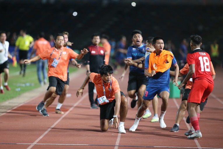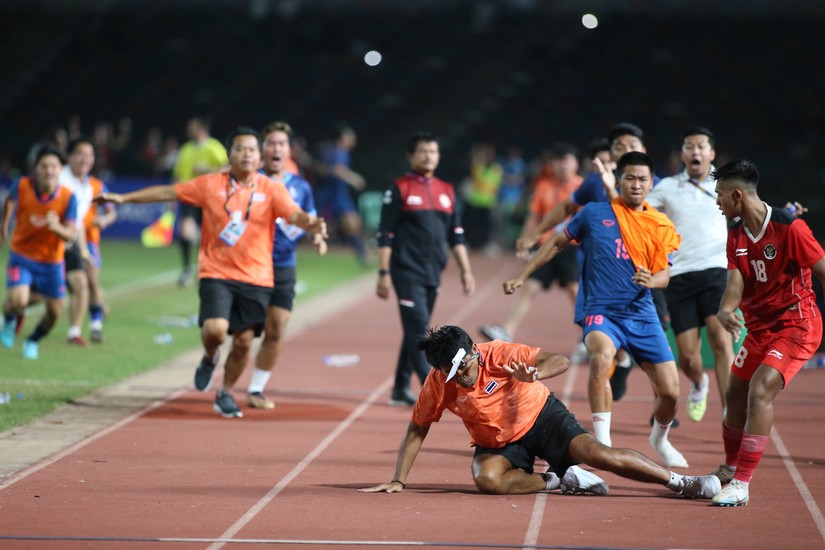 | Hình ảnh xấu xí trong trận chung kết SEA Games 32 giữa U22 Indonesia và U22 Thái Lan. |