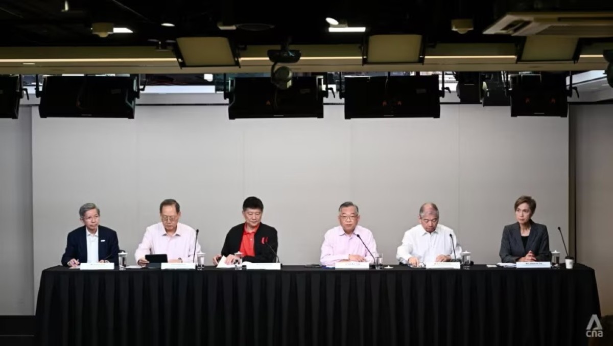| Các thành viên của Lực lượng Đặc nhiệm Phục hồi Kinh tế Singapore tại Trung tâm Báo chí Quốc gia, ngày 10/7. Ảnh: CNA |